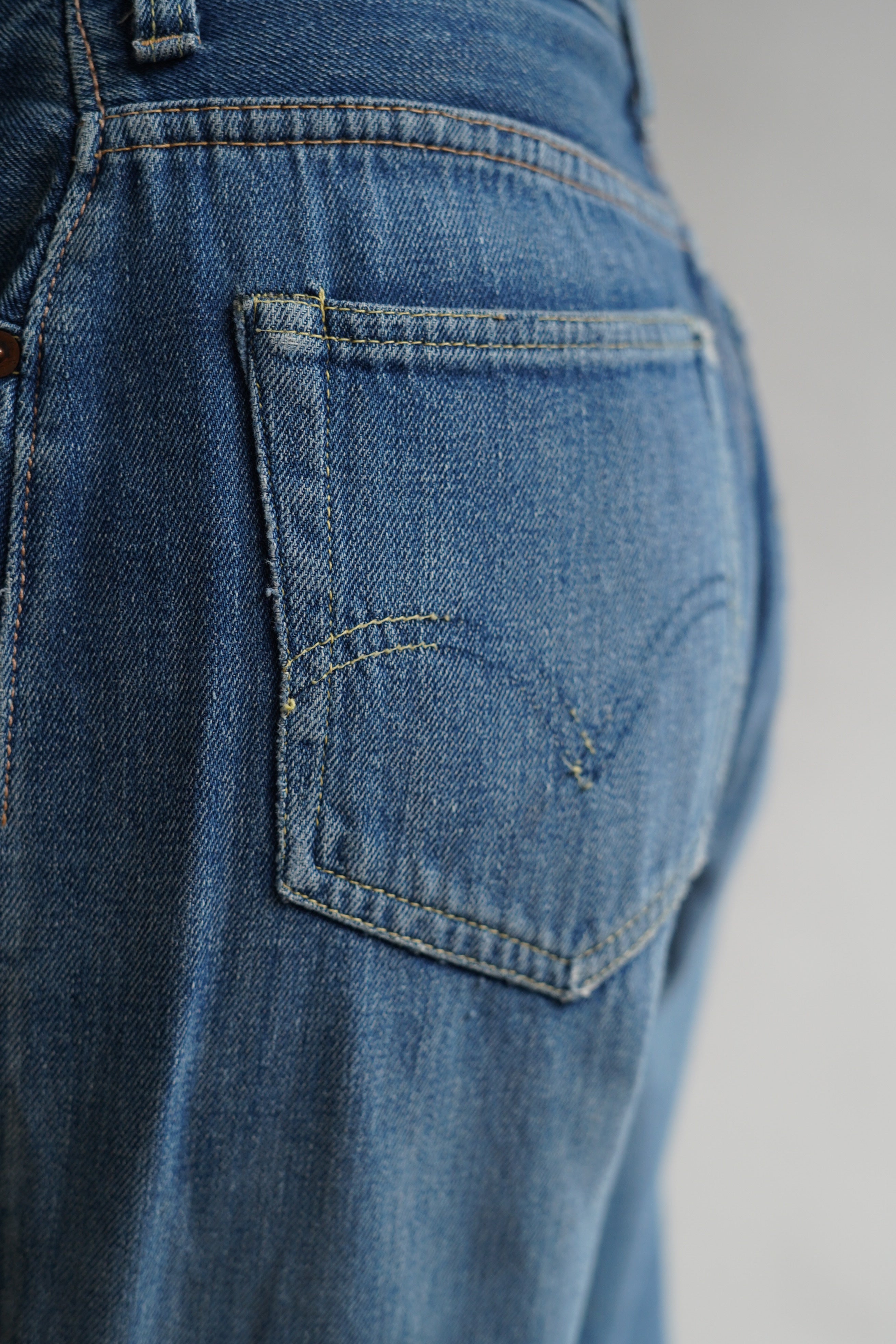 通称"モンローデニム"の愛称で親しまれるレディース用に作られたリーバイス"701".股上の深さとヒップの丸みから裾にかけてのテーパードシルエットが特徴。ライトオンスで柔らかな生地です。かなり履き込まれた雰囲気の一本。レングスも短めで色々なバランスでお楽しみただけます。GENDERLESS.