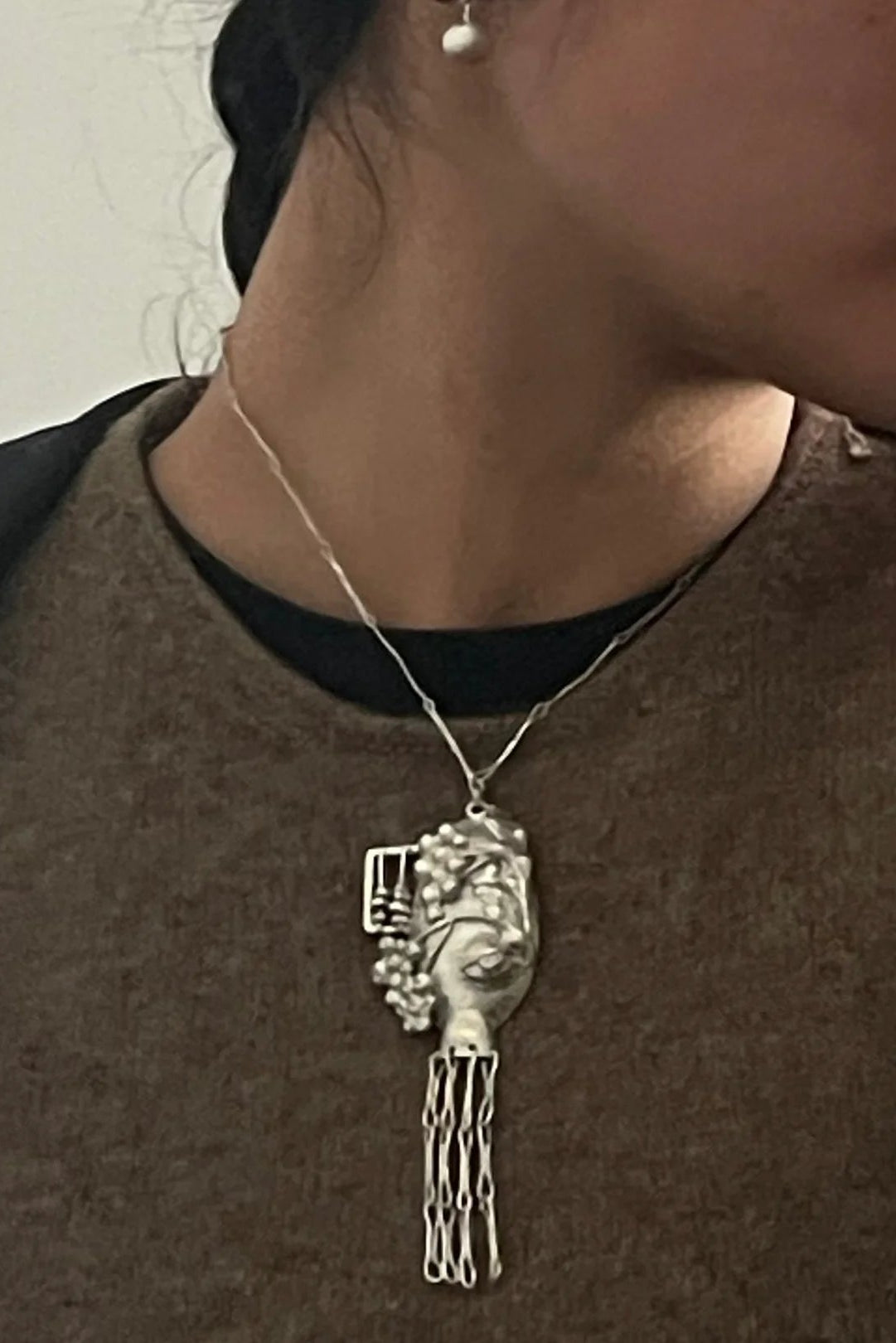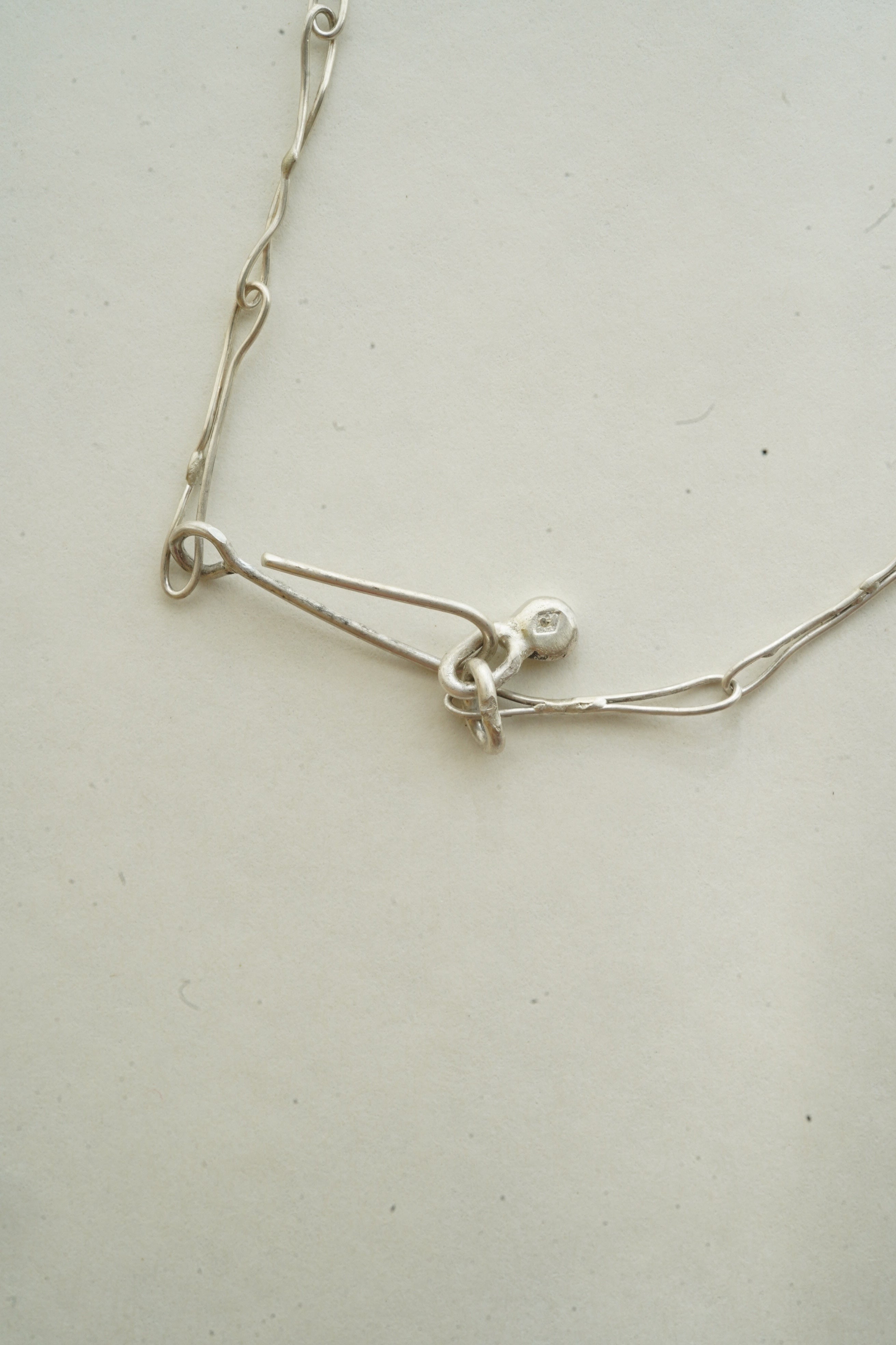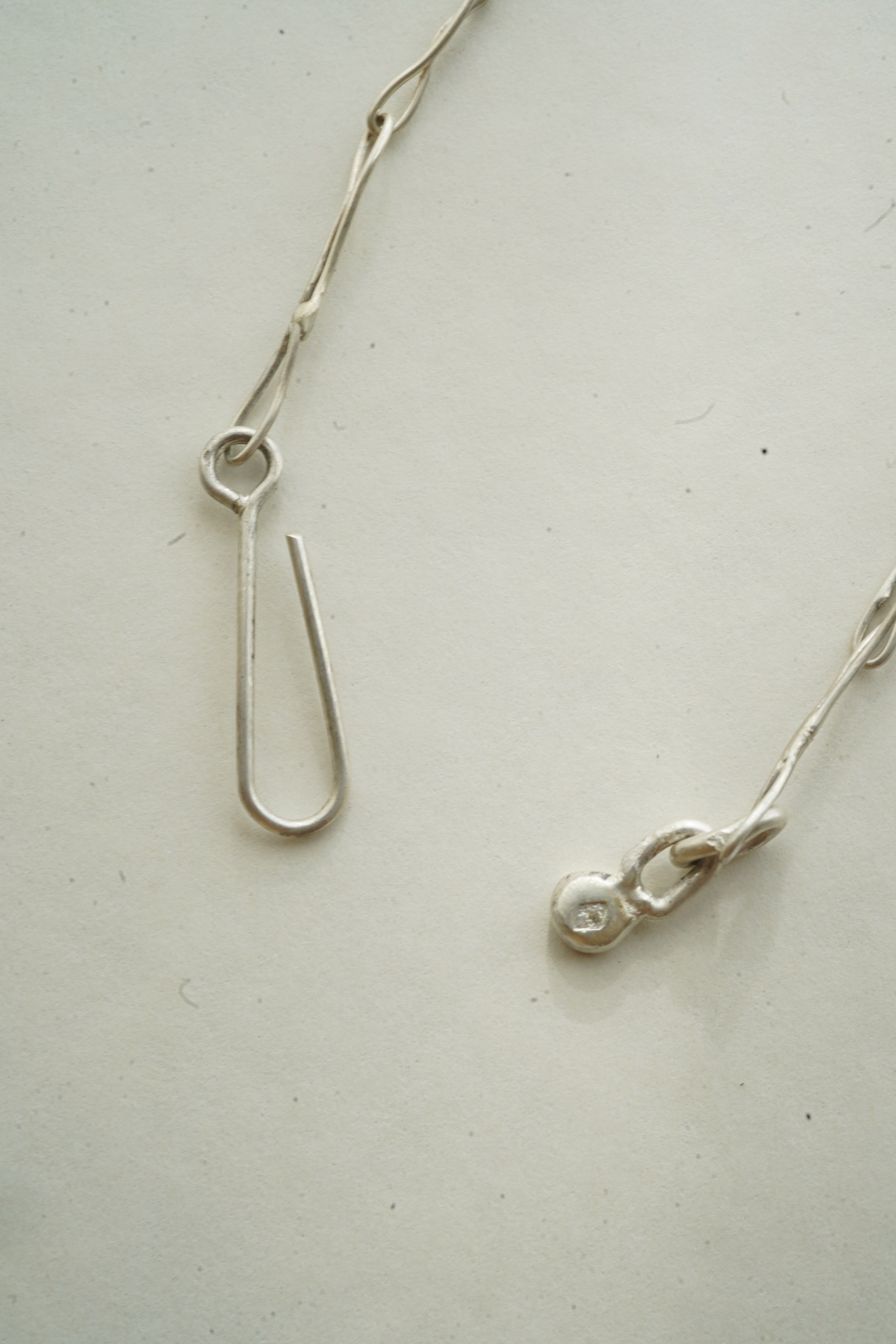 手作業で丁寧に鍛造・鋳造されたスターリングシルバーのチェーンは、フリンジ状に連なり、ひとつひとつのリンクがループ状になり確かな手仕事によって仕上げられています。