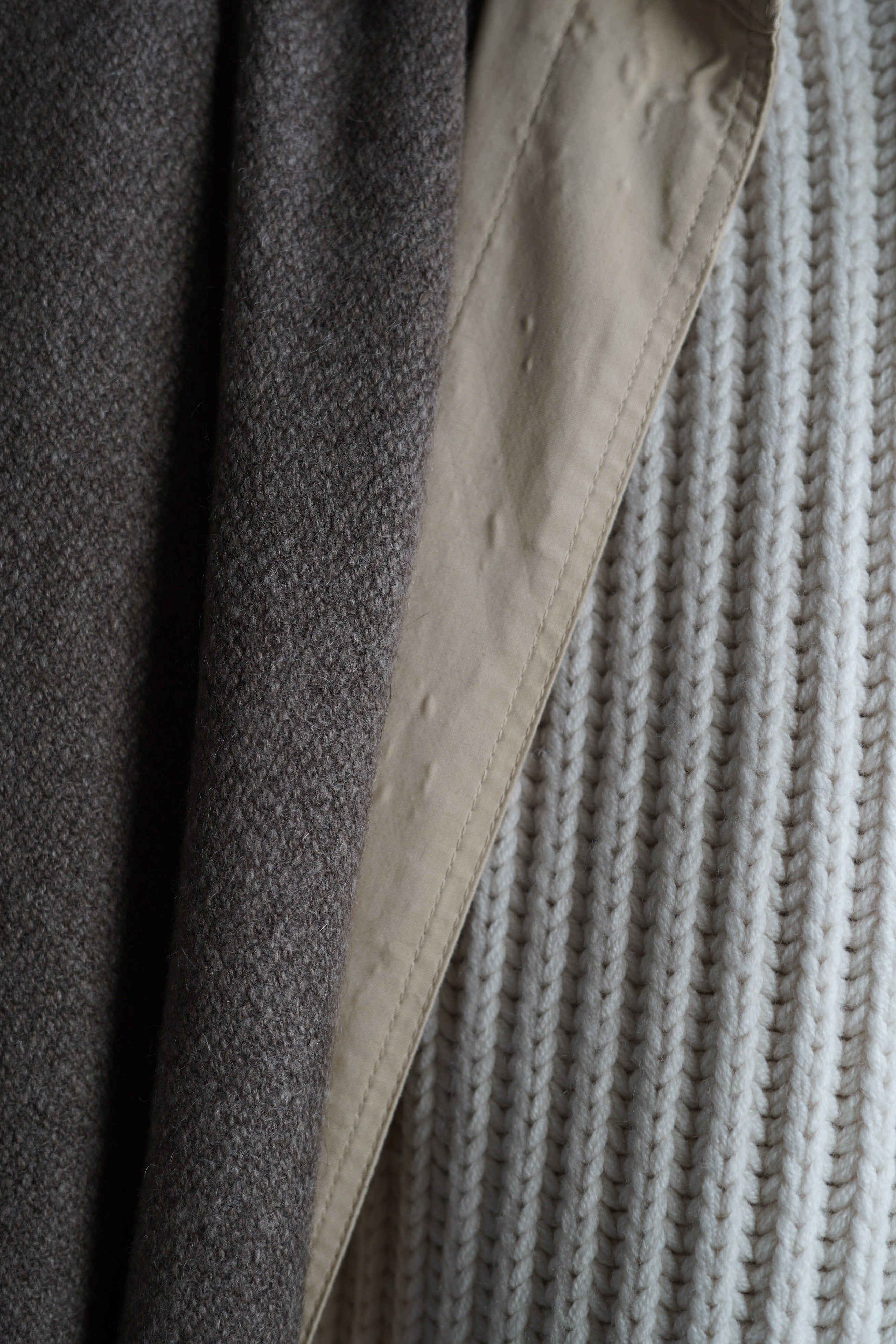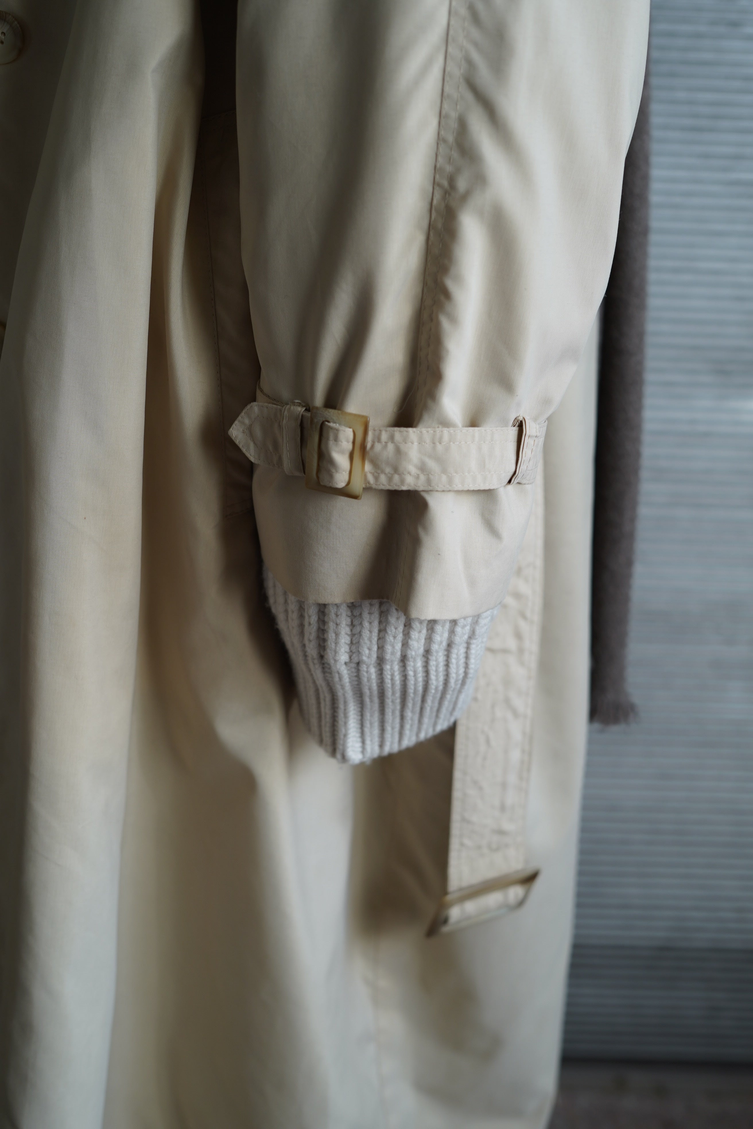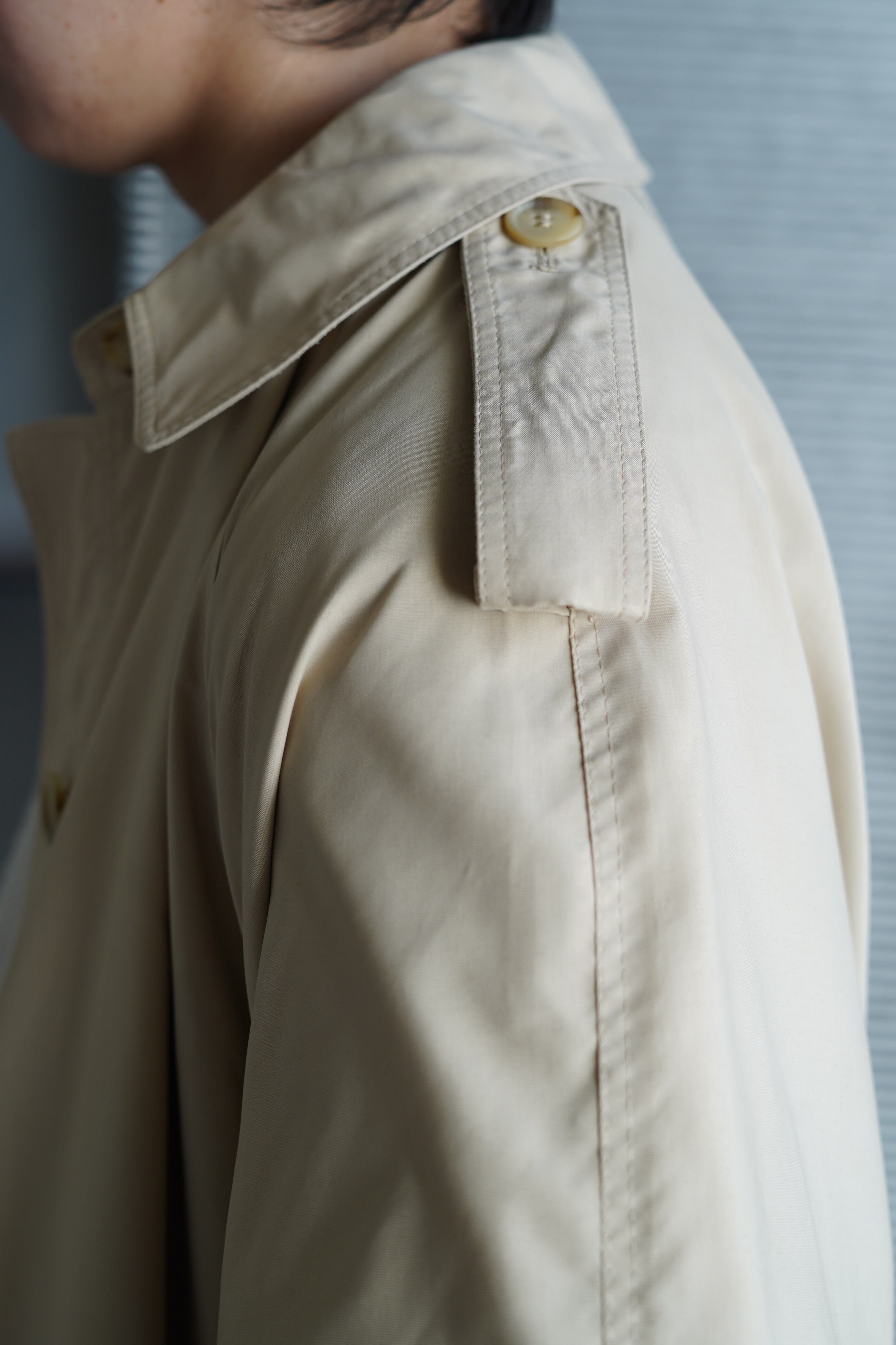 イタリアで見つけたベーシックなシングルトレンチコートです。明るめのベージュトーンで、裏地はペイズリー柄と下半分は起毛素材のライナーとなっています。秋〜春先のコートとして、今の時期は暖かなニットを一枚重ねて、上から大判のストールなどを巻けばちょうど良いです。軽さがありさっと手に取りたくなる一枚です。