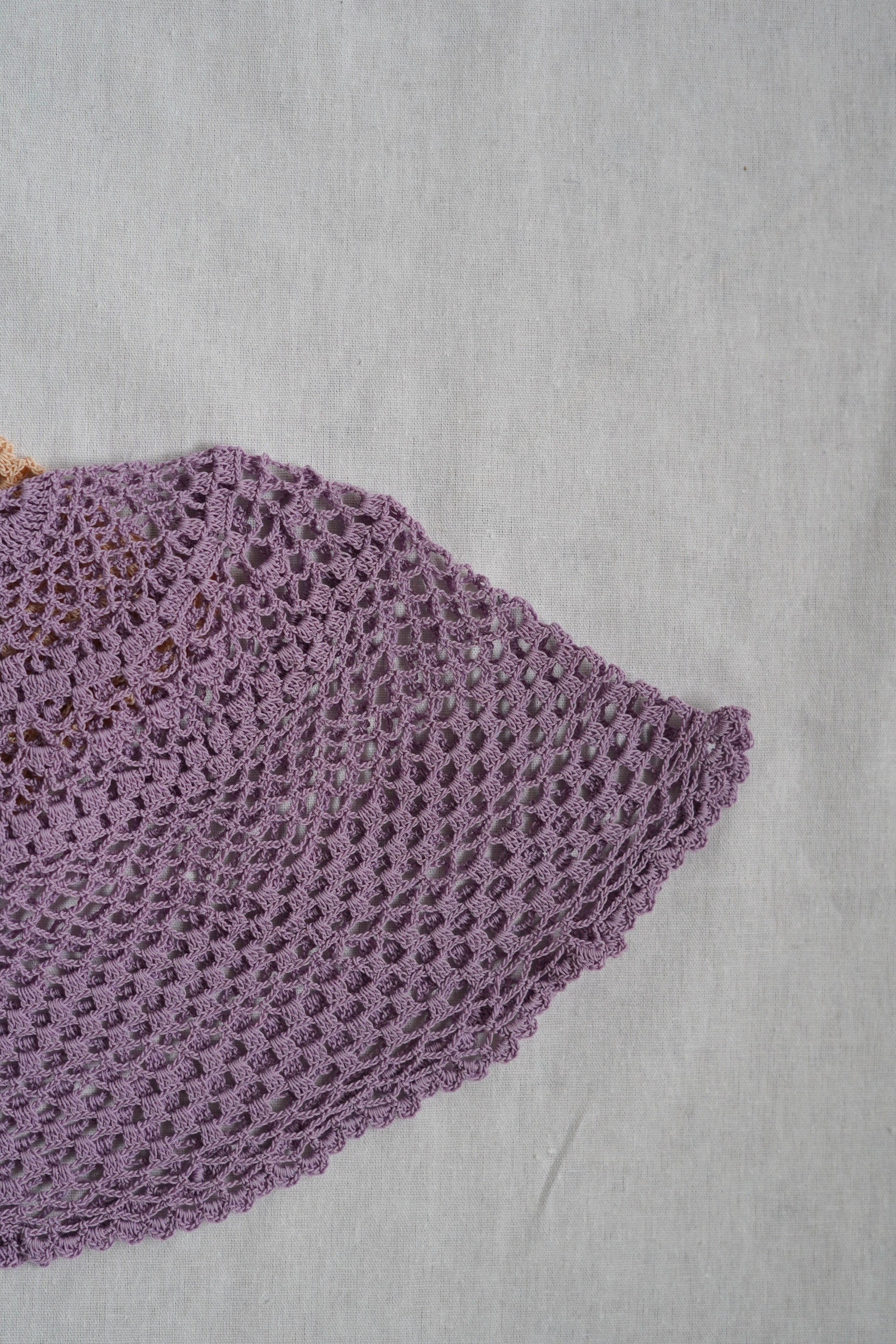 コットンレース糸を用いたクロシェ編みのキャップ。繊細な編み柄が軽やかに透け、柔らかく頭に沿うフォルム。手編みのため、編み地やサイズに若干の個体差が生じる場合がありあますが、製品の特徴としてご了承ください。※繊細な編み地のため、着用時や保管時のひっかけにご注意ください。