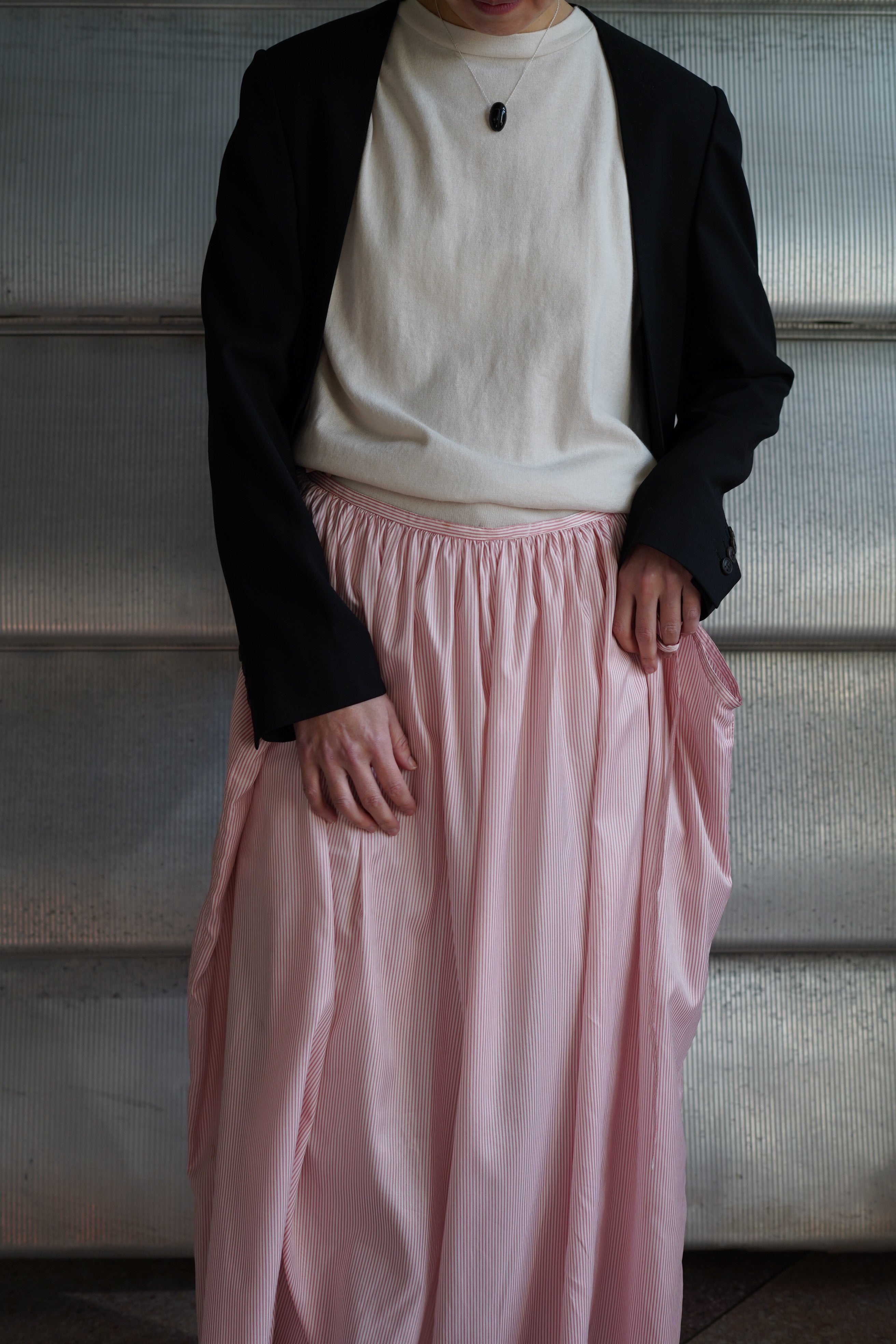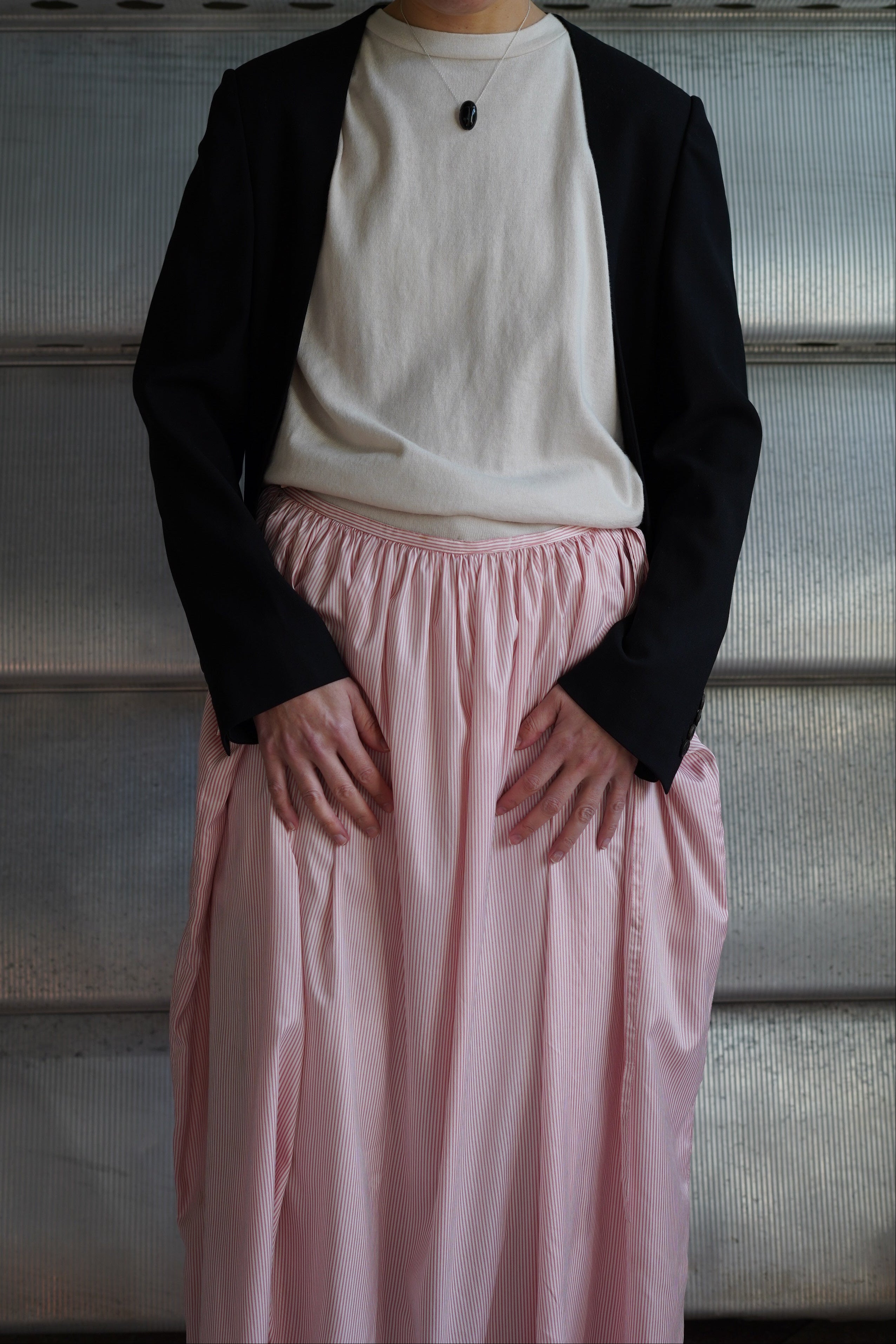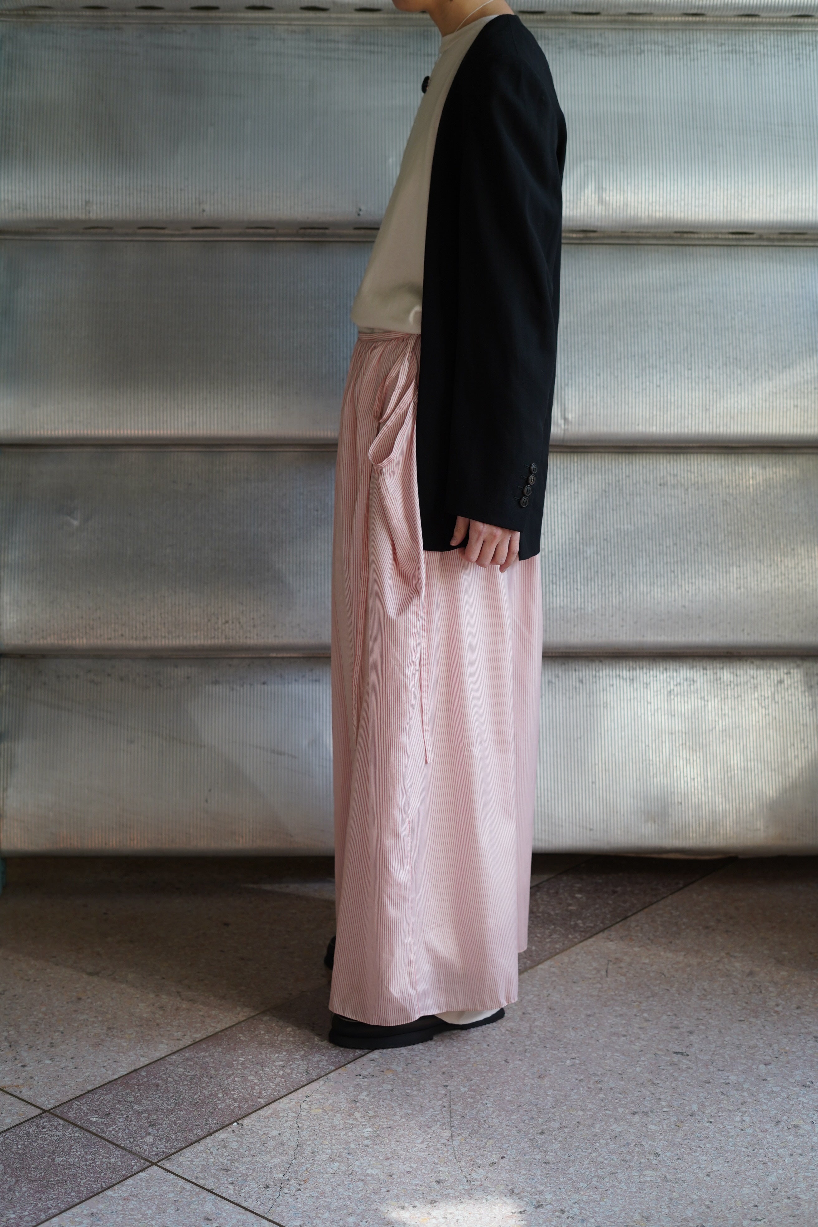 Martin MargielaがエルメスWOMENSのディレクションをしていた年代のアイテムです。こちらはノーカラーのテーラージャケットです。
