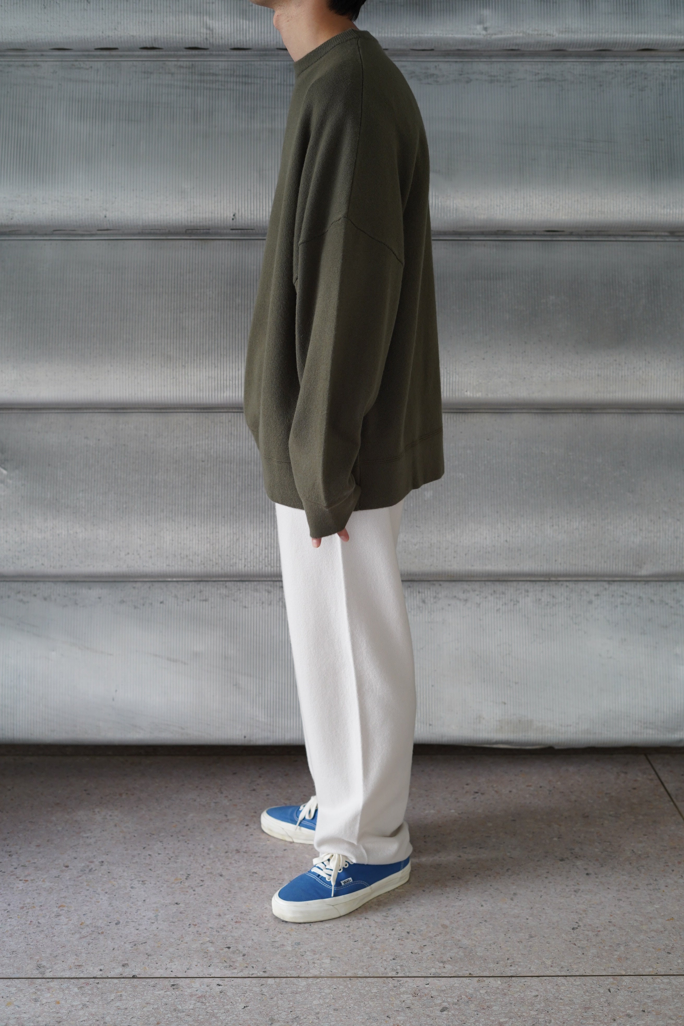 LAST 1.UNISEX ITEM.リラックスフィットで極上の快適さと温かさを感じられるパンツです。バックポケットが一つ付いており、裾は切りっぱなしデザイン。ストレッチの効いたカシミアは今までのニットの概念を取り払って、よりカジュアルに枠にはまらず自由に楽しみたいアイテムです。