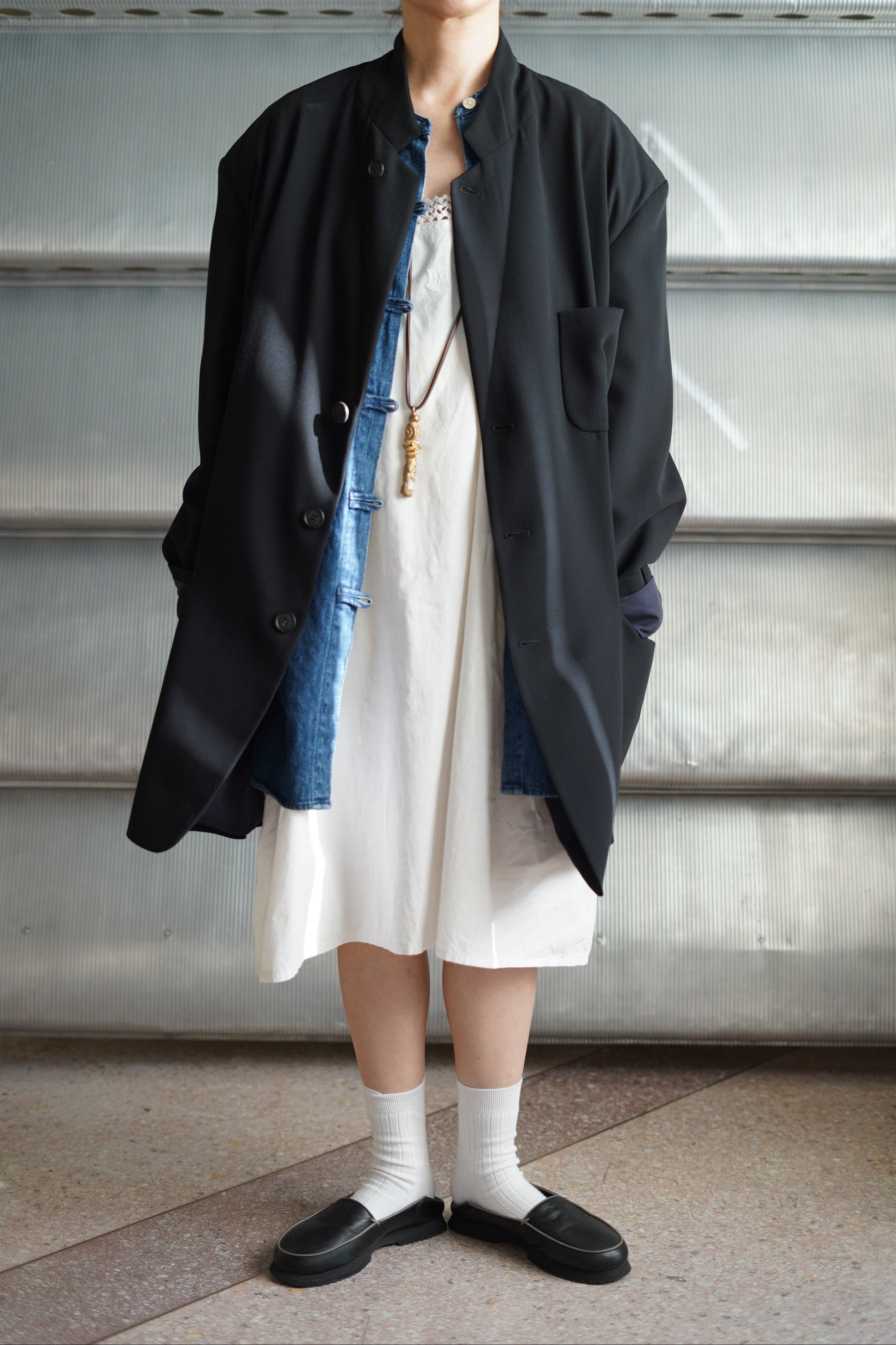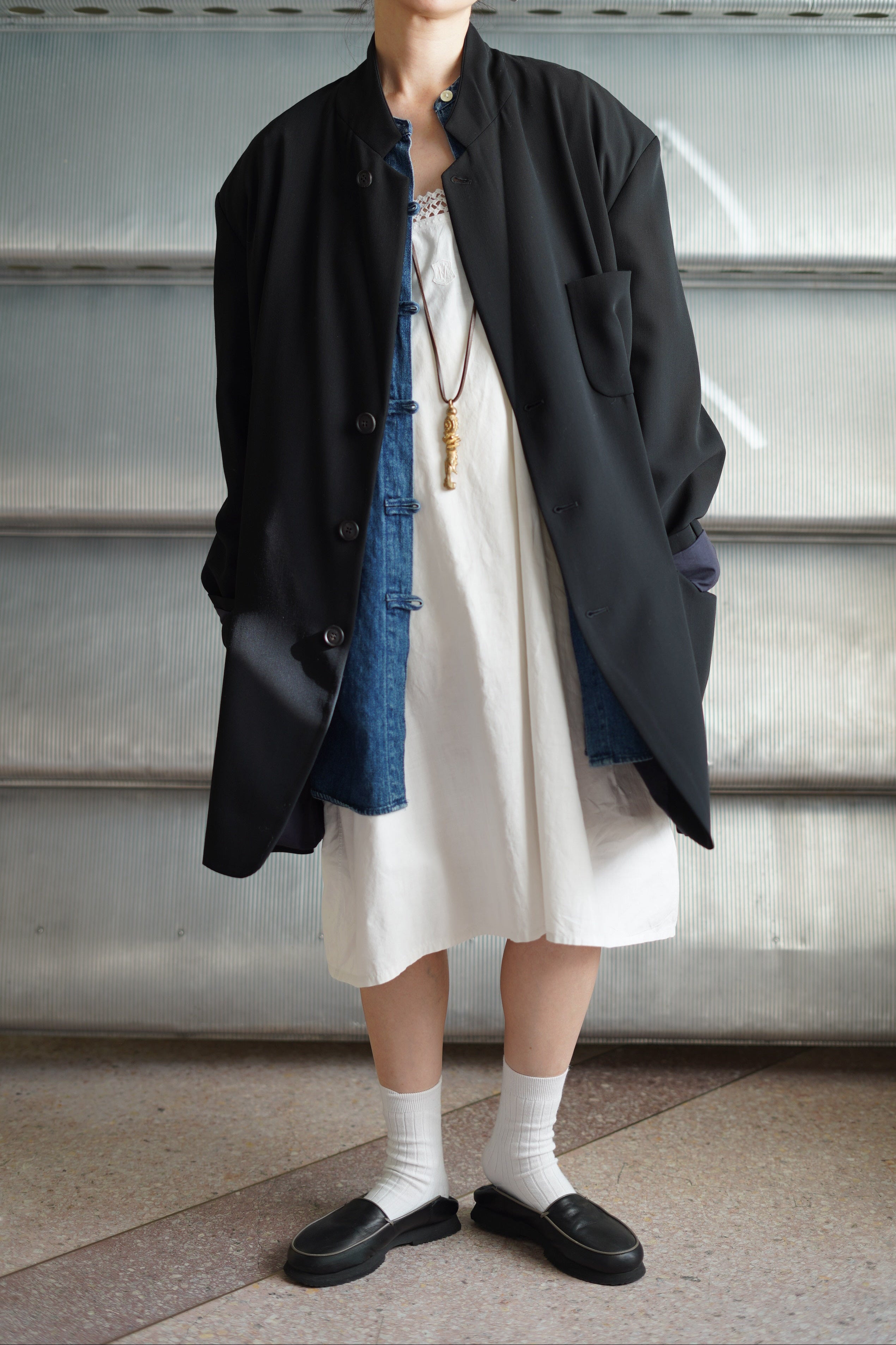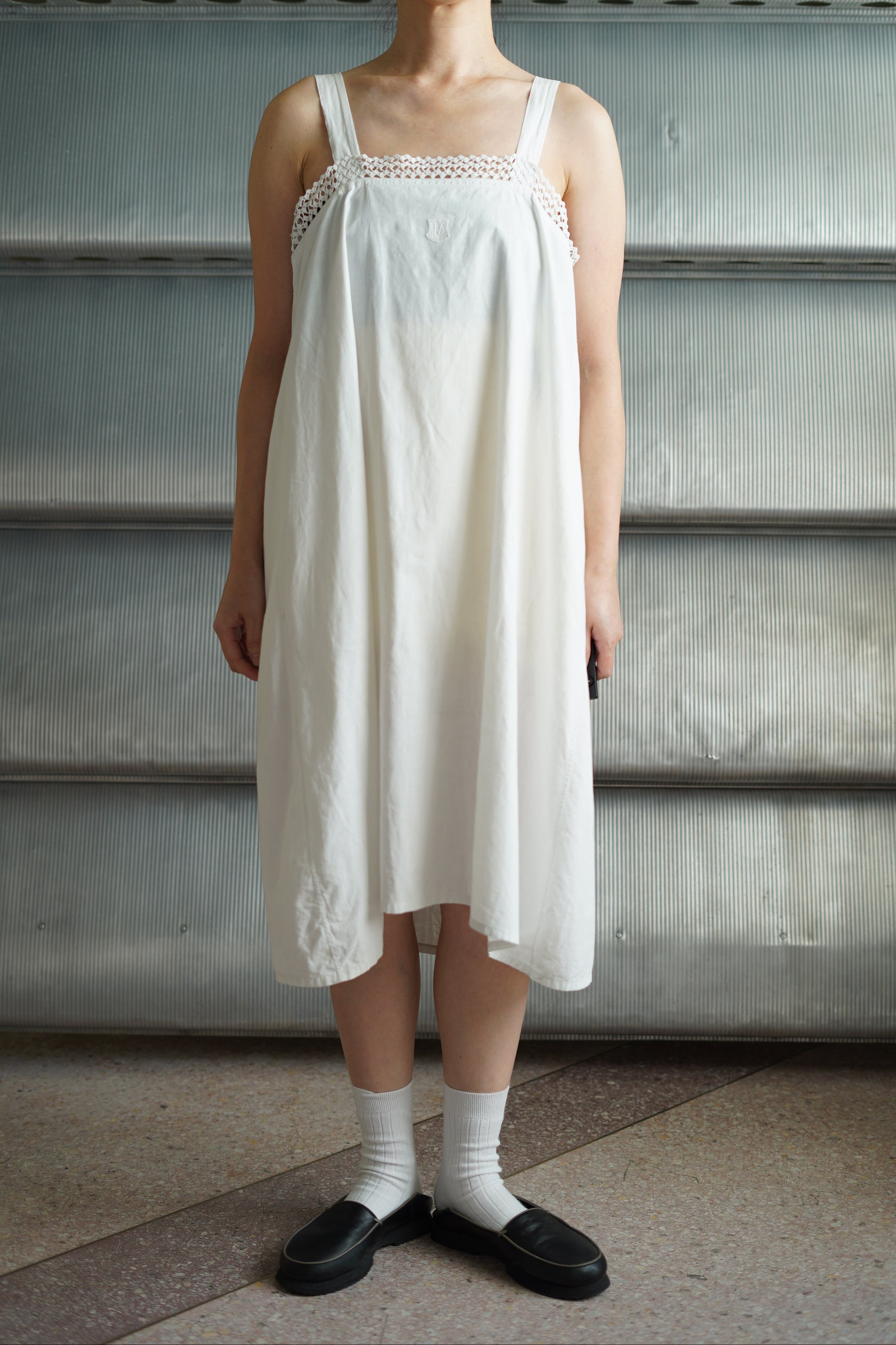 華奢で美しいアンティークのキャミソールドレスです。胸元のクロシェレースのトリムとフロントのMの刺繍が入ったシンプルでキュートなリペアやハンドワークの一着。これからの季節はジャケットやモヘアやニットカーディガンなどたっぷりとしたトップスと重ね着して、マテリアルのバランスを楽しむスタイリングもおすすめです。ダメージアイテムや、ロングブーツなどご自身の好きと合わせてお楽しみください。VINTAGEYear:EARLY1900SCountry:EUROPEMaterial: 表記なし(COTTON)Size:FREE身幅約48cm,裾幅79cm,着丈約97cmSTAFF 155cmCondition:全体的に年代相当のコンディションです。うっすらと汚れやシミなどが見受けられる箇所がいくつかございます。リペア跡があります。普段より古着に慣れていらっしゃるお客様へお勧めいたします。STYLING WITH:VINTAGE GEOFFREY BEENE SPORT DENIM SHIRT, CRISTASEYA OVERSIZED LONG BLAZER