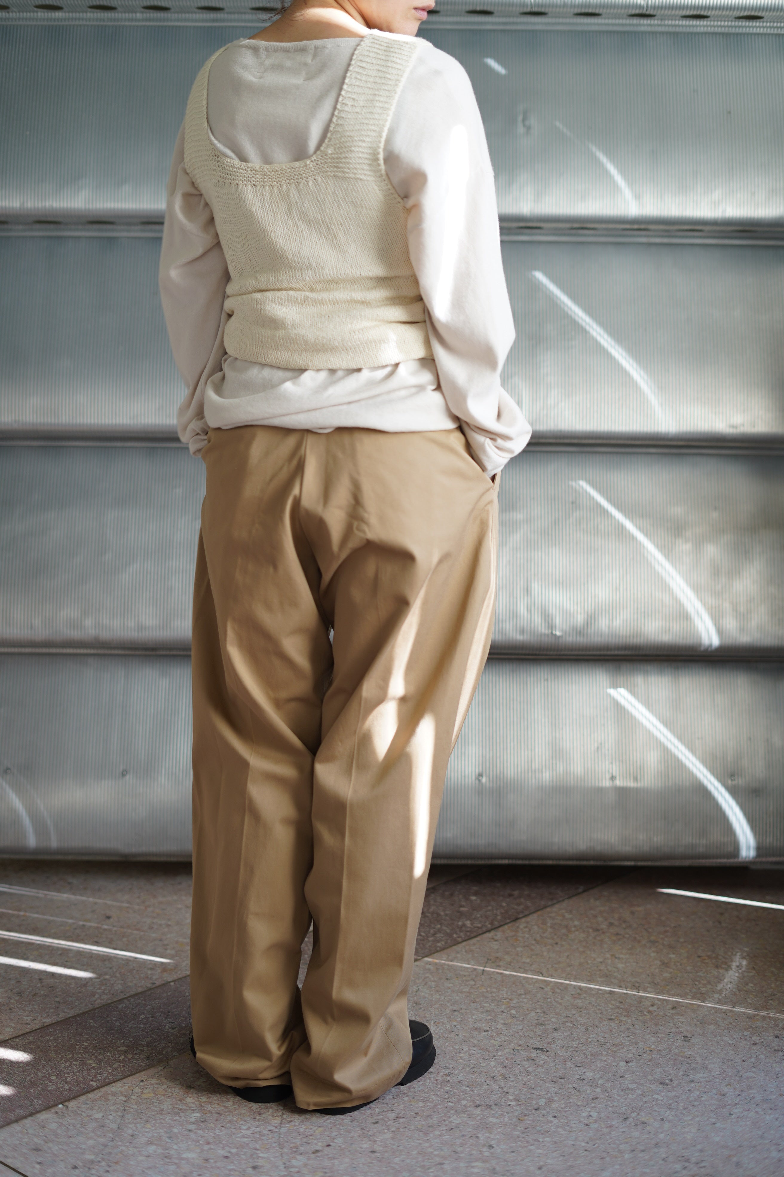 ヨーロッパの50~60年代ごろのハンドニットトップスです。装飾性のないプラクティカルなデザインから、ミリタリーの支給品やユニフォームなどを彷彿とさせますが、とても柔らかで優しいハンドニッティングであることからどこかのお家で作られたものだと思います。シャツや薄手のトップスなどと合わせてレイヤードをしてお楽しみください。VINTAGEYear:EARLY1950s-60sCountry:EUROPEMaterial: 表記なし(COTTON)Size: FREE 肩幅約32cm,身幅 約35cm,袖幅36cm,着丈60cmSTAFF155cmSTYLING WITH:EXTREME CASHMERE n°347 aries in CHALKCondition:全体的に年代相当の良好なコンディションです。こちらの商品は、古着ならではの風合いや経年変化がございます。その特性をご理解のうえお楽しみいただけるお客様におすすめしております。