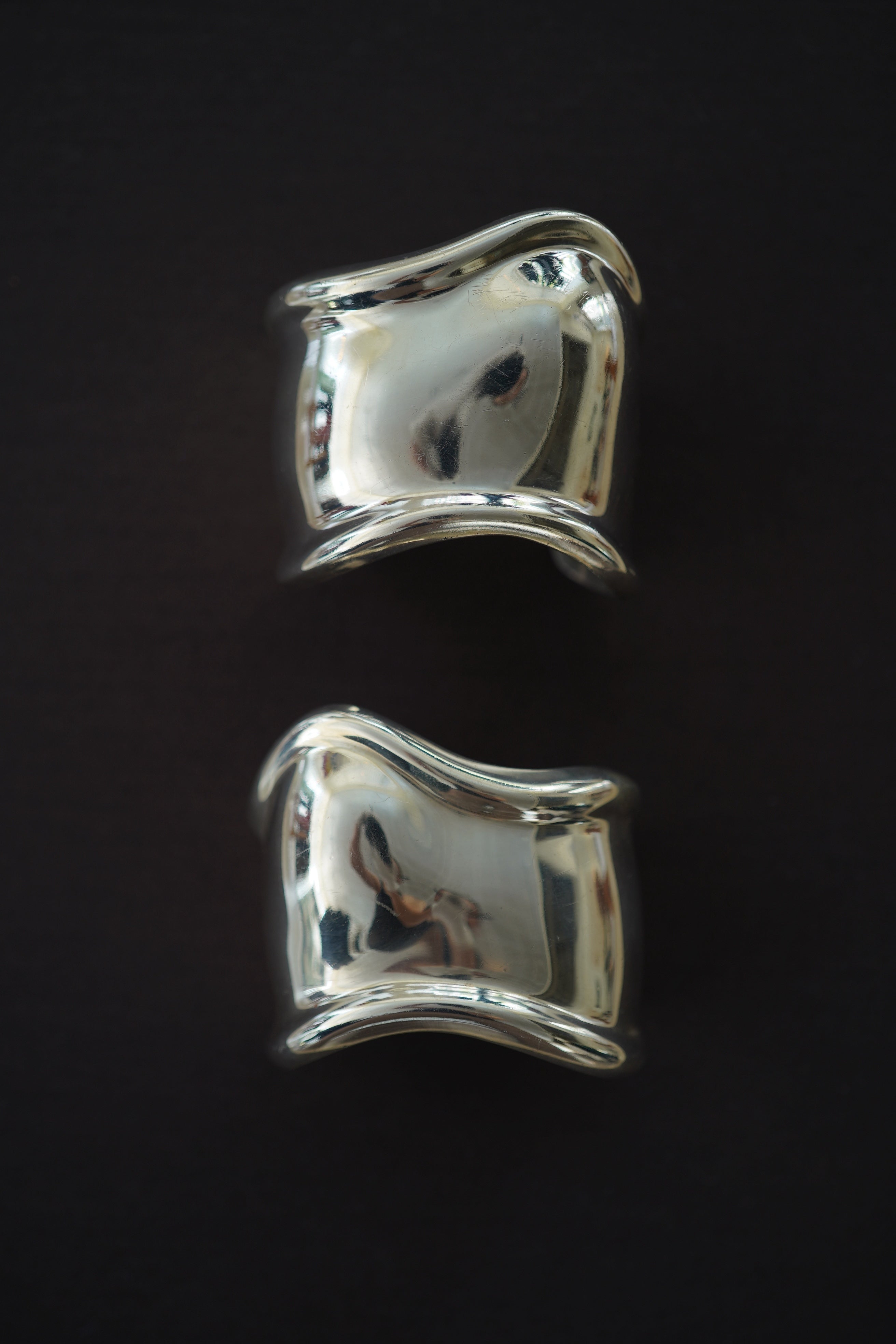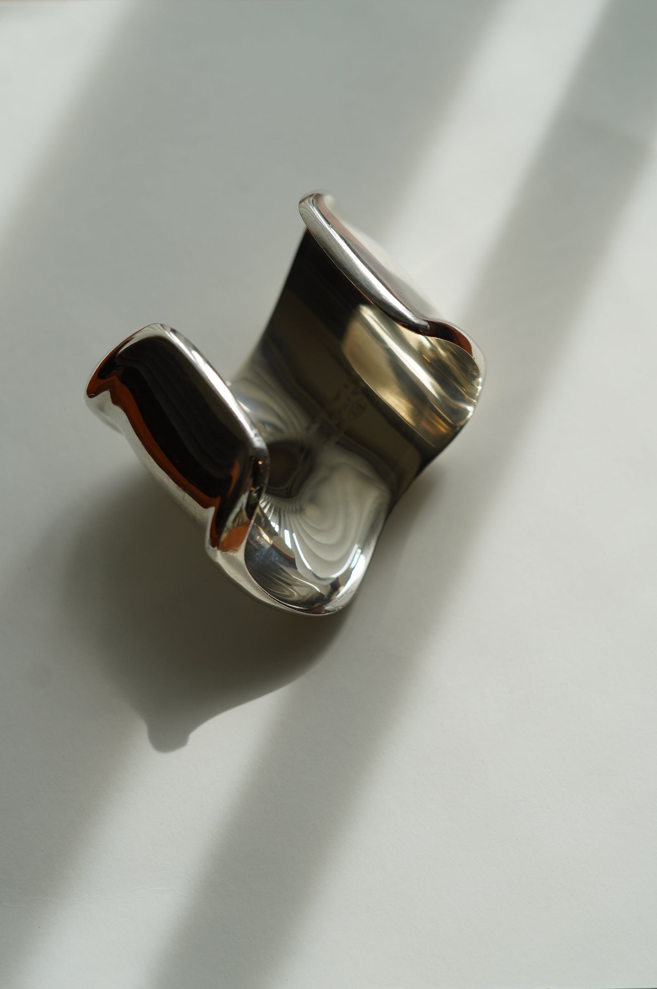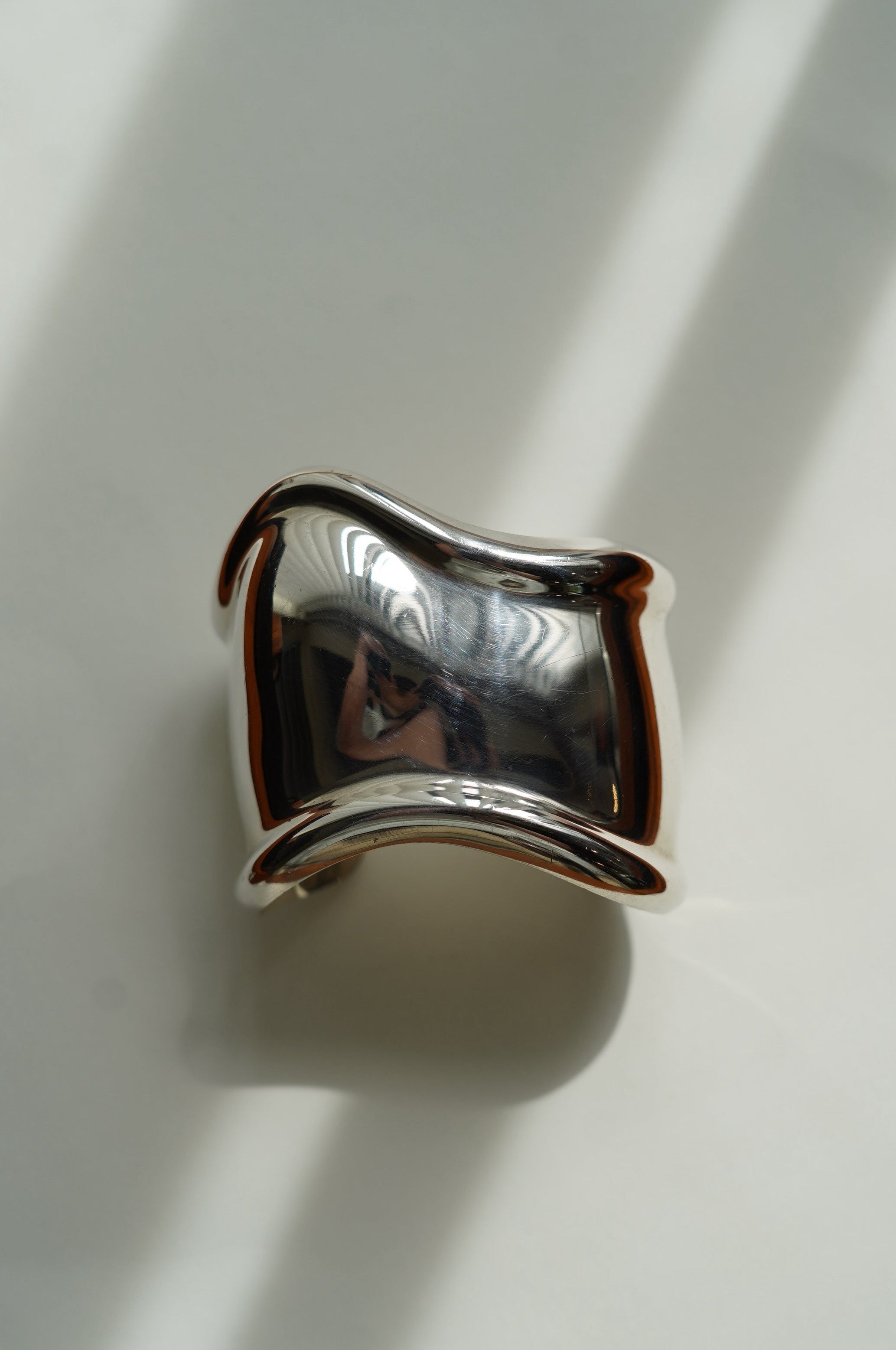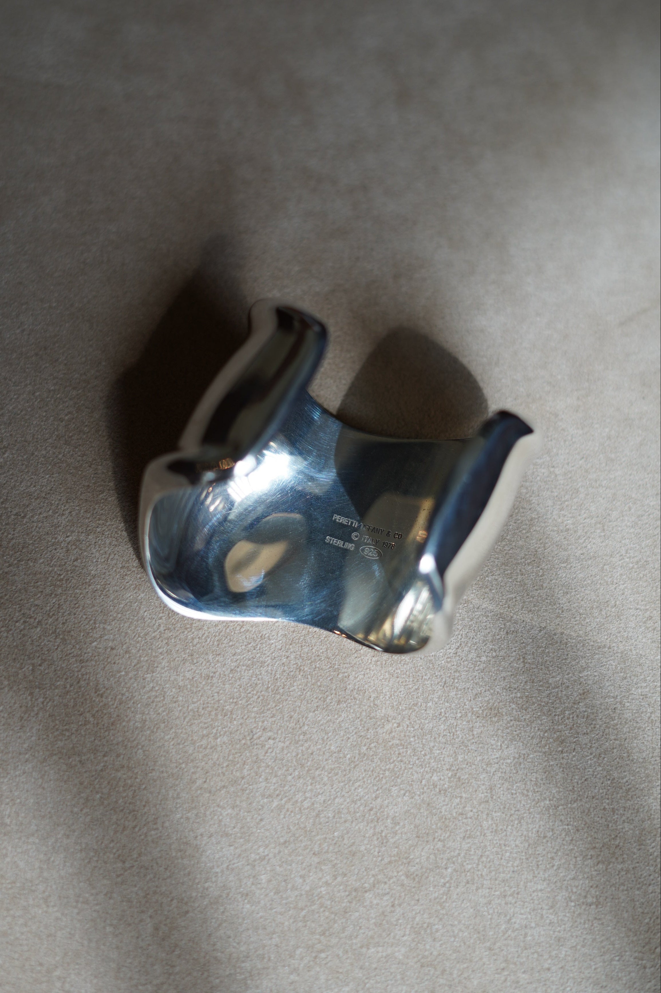 こちらの商品はWEB SHOPからはご購入頂けません。ご購入依頼、その他詳細は CONTACTからお問い合わせ下さい。 Not available for cart purchase.Please contact us via the CONTACTpage for orders or inquiries.エルサペレッティがデザインした代表作とも言えるBONE CUFFです。人間工学に基づき右手用と左手用にデザインを変えることで生まれた手首にフィットするデザイン。こちらは非常に貴重なミディアムサイズで、存在感を放つボリューム。希少な左手用。エルサは1974年Tiffanyの専属デザイナーとなりますが、初期にあたる1978年の貴重なコレクションです。年代の刻印あり。